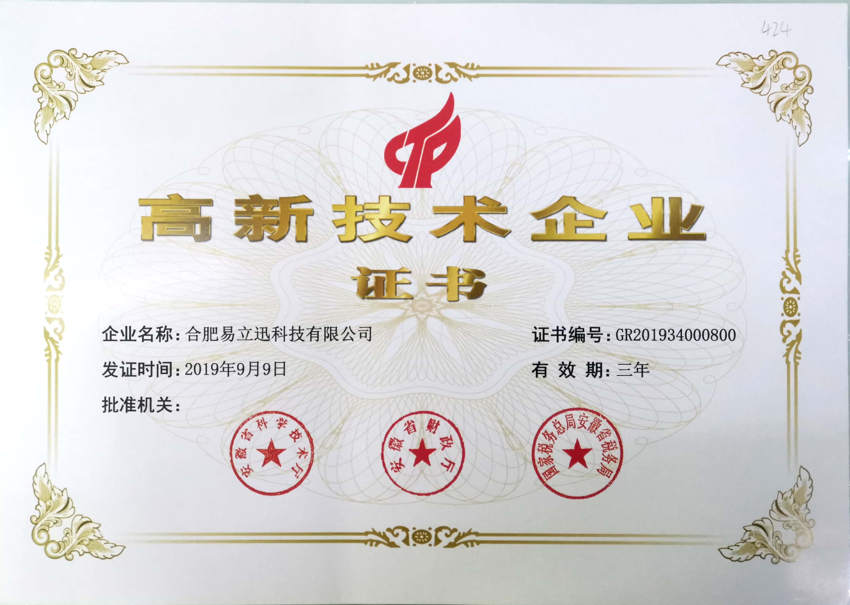 合肥易立迅科技有限公司(簡(jiǎn)稱(chēng)“易立迅”)于2015年成立于合肥,首批注冊(cè)資金1000萬(wàn)元人民幣。2019年通過(guò)“高新技術(shù)企業(yè)”認(rèn)證。